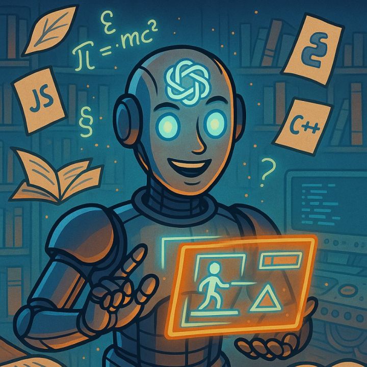 Prompt (kurzer Prompt hat nicht funktioniert): Bitte erstelle ein Bild im Comicstil, das dich selbst darstellt! – Entweder als Roboter, Computer, schwebender Chip, Bücherwesen oder als menschliche Figur. Je nachdem, was dir am passendsten erscheint. Ich möchte deine Entscheidung sehen!