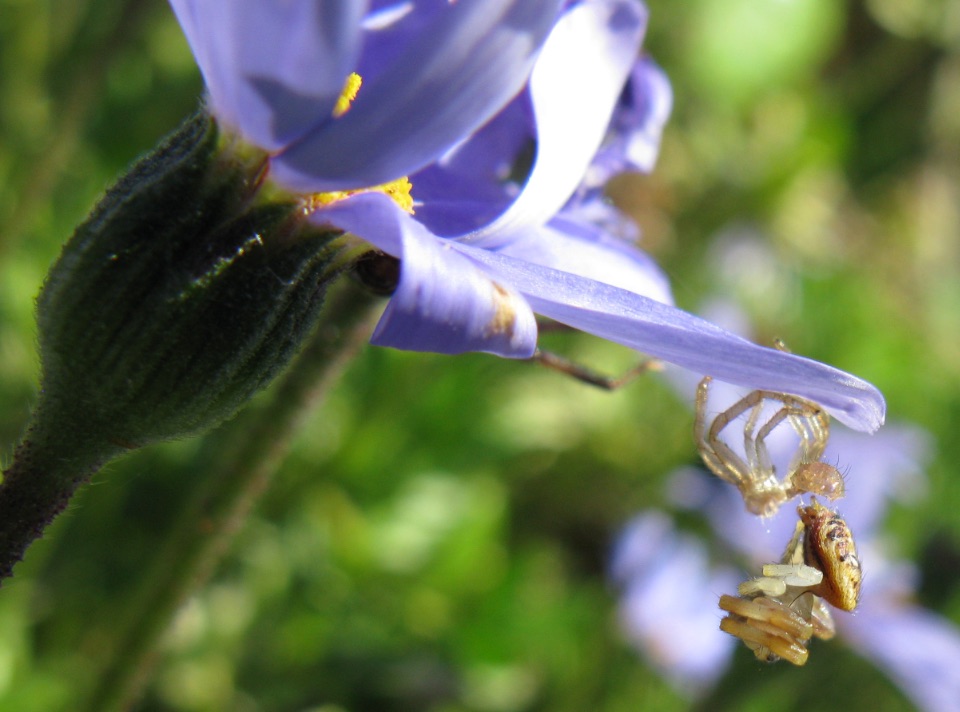 Viele heimische Spinnen paaren sich im Sommer. Die meist deutlich kleineren Männchen übertragen mit ihren Kiefertastern Spermien in die Geschlechtsöffnung des Weibchens. Bei manchen Spinnenarten wird das Männchen vom Weibchen nach der Paarung gefressen, wodurch das Weibchen vermutlich zusätzliche Nährstoffe für die Eibildung erhält.