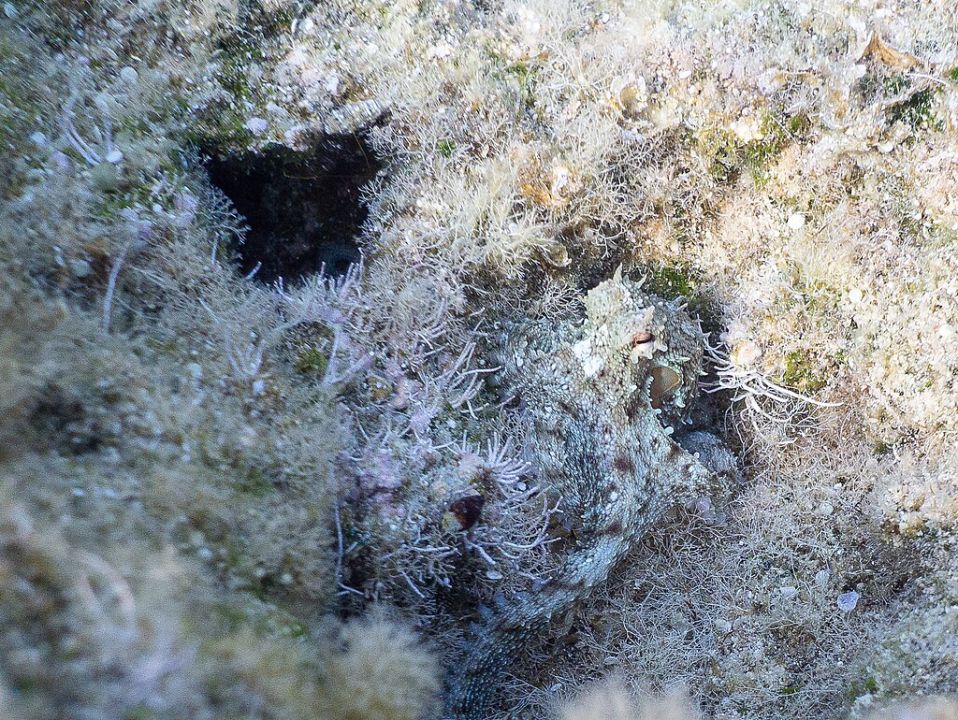 Darüber hinaus können sich Kraken – wie Sepien – sehr gut tarnen: Sie können nicht nur ihre Farbe, sondern auch die Textur ihrer Haut blitzschnell an ihre Umgebung anpassen – dank spezialisierter Pigmentzellen (Chromatophoren) und Muskelfasern in der Haut.